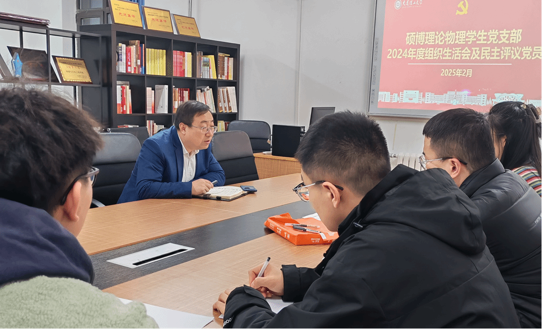 为深入学习贯彻党的路线方针政策,加强党组织建设,进一步推动全体党员的思想觉悟与行动相统一,乐竟体育网页版硕博理论物理学生党支部于2月27日晚在物理楼422室召开了2024年度组织生活会暨民主评议党员大会,本次会议通过批评与自我批评、领导点评等环节,全面推动思想建党与制度治党同向发力。本次会议由支部书记韩钰芬同志主持,学院党委书记于长水教授莅临指导,支部全体党员参会。