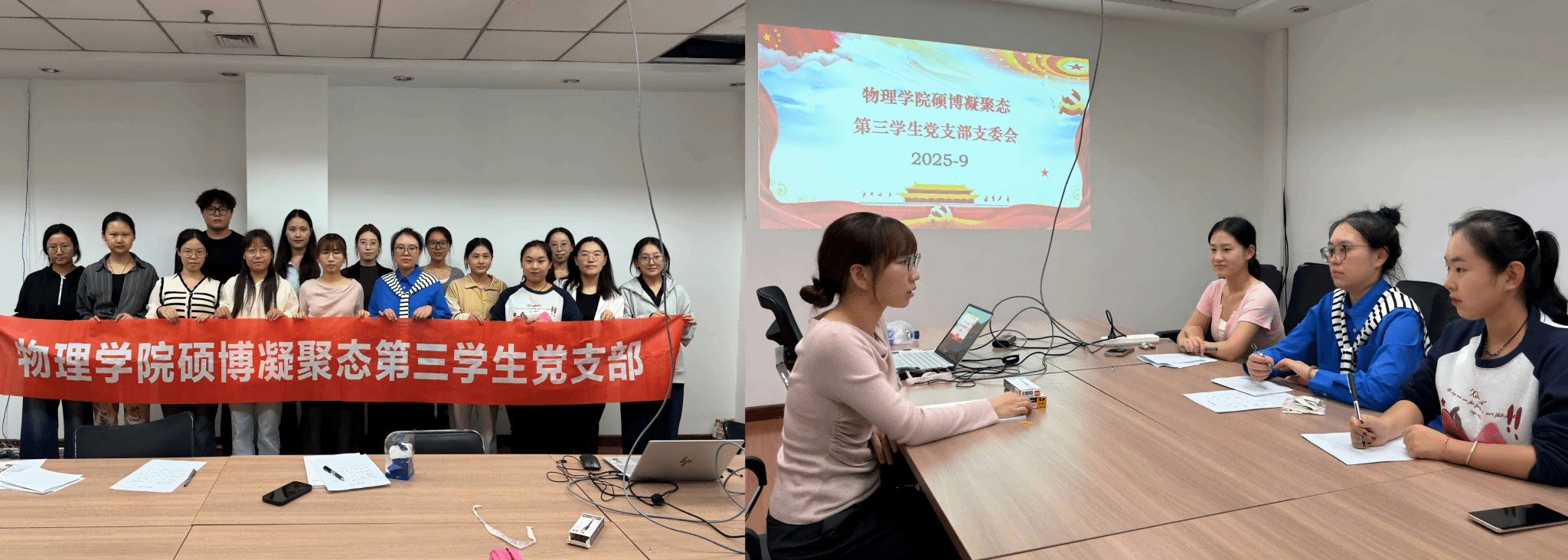 会议最后,全体党员合影留念,记录下党支部焕新启航的珍贵瞬间。会后,赵博书记立即召集新当选的党支部委员召开工作会议,明确职责分工,并就强化理论武装、创新活动形式、推动党建与科研深度融合等方面提出了新学期的具体要求与展望。